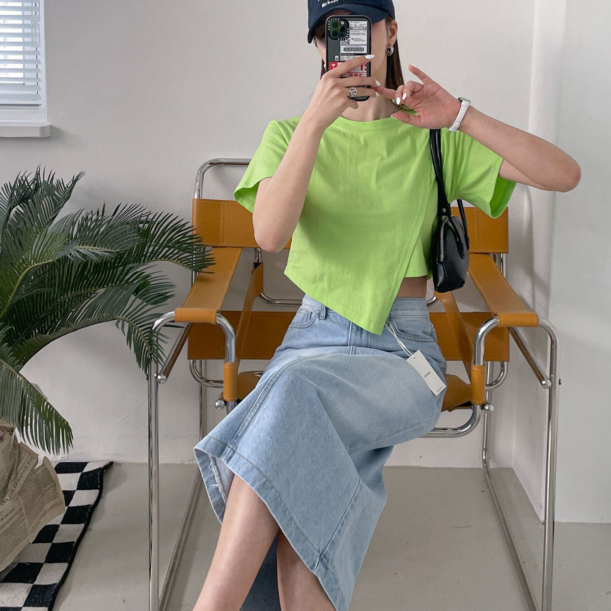 斜め切り替え クロップTシャツ
